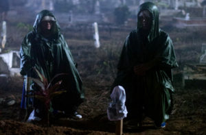 The folklore in this first episode revolves around the Wewe Gombel, a female supernatural entity who is said to kidnap unwanted or neglected children. According to the legend, “the ghost was named Wewe Gombel because it is related to an event that, according to ancient folklore, happened in Bukit Gombel, Semarang, where long ago a married couple lived. They had been married for years, but as time went by the husband realized that his wife was barren and stopped loving her. The husband became wayward, neglecting his wife and leaving her alone for long periods so that she lived in sorrow. One day she followed him and caught him in a sexual relationship with another woman. Hurt by her husband’s betrayal she became furious and killed him. Faced with the crime, angry neighbors gathered in a mob and chased her from the village. Despairing at the ostracization and continual harassment, she committed suicide.