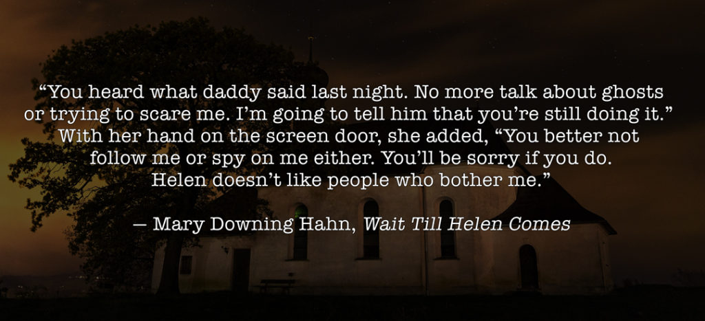 The spine-chilling tale begins when twelve-year-old Molly and her ten-year-old brother, Michael, learn that they’ll be moving to a refurbished old church in rural Maryland with their mother’s new husband, Dave, and their younger stepsister, Heather. Heather is an insufferable brat, but that turns out to be the least of the family’s worries. When she strikes up a friendship with Helen, the malevolent ghost of a seven-year-old girl who died in a mysterious fire more than a hundred years ago, things really heat up . . . and Heather’s unsettling threat, “Wait till Helen comes,” becomes a grim reality.